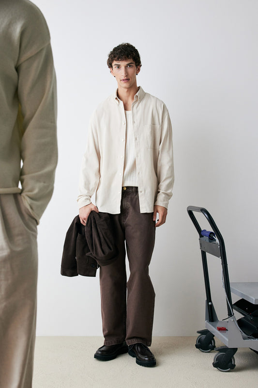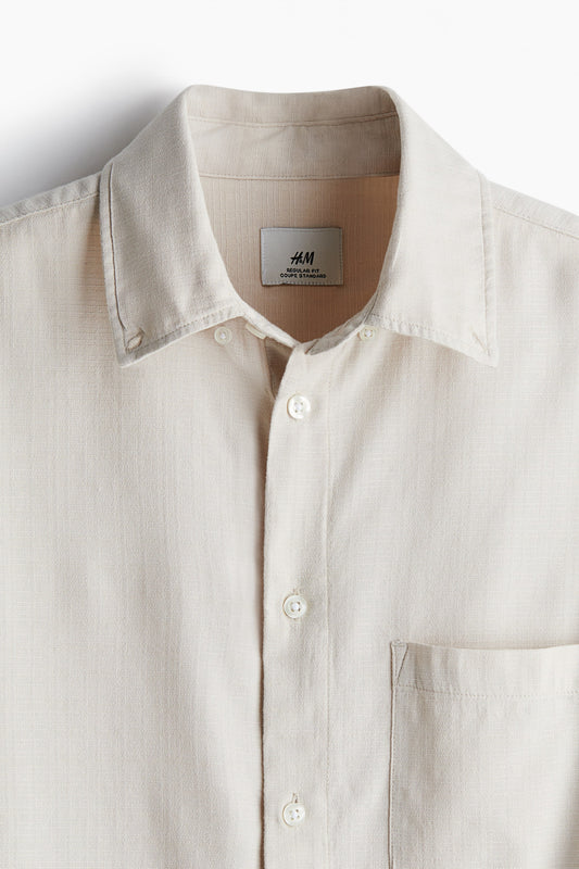 Shirt in a textured weave with a button-down collar, classic front, yoke at the back and an open chest pocket. Long sleeves with adjustable buttoning at the cuffs and a sleeve placket with a link button. Gently rounded hem. Regular fit for comfortable wear and a classic silhouette.
