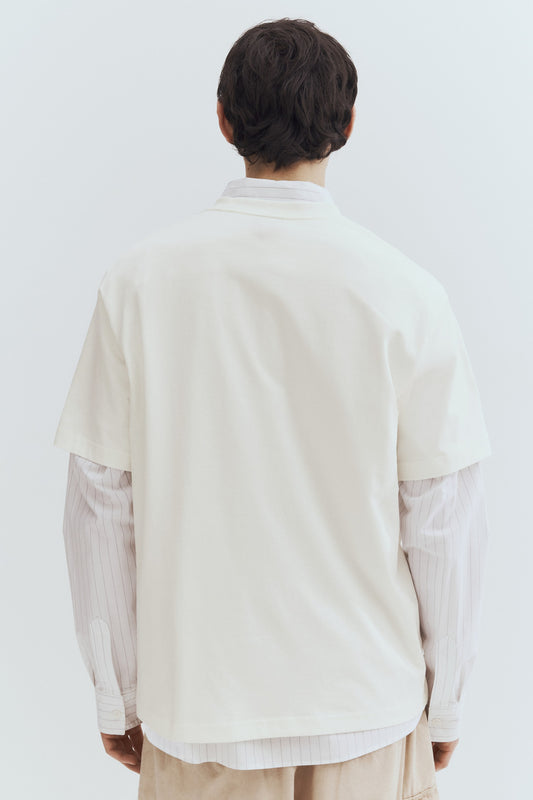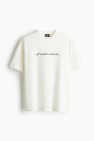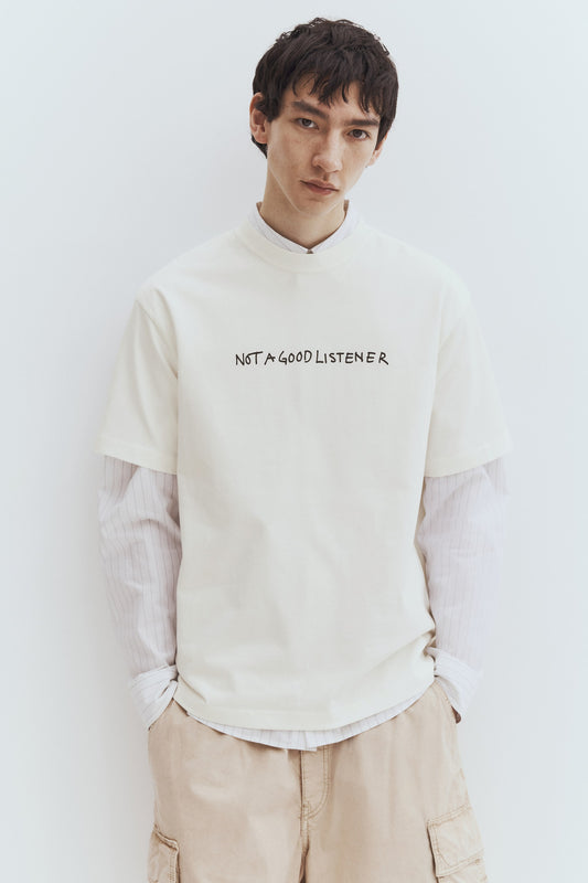 T-shirt in midweight cotton jersey with a print motif, round, rib-trimmed neckline, dropped shoulders and a straight-cut hem. Loose fit for a generous but not oversized silhouette.