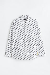 Oversized shirt in Oxford cotton with an all-over print. Turn-down collar, classic front, yoke at the back and an open chest pocket. Long sleeves with buttoned cuffs and a sleeve placket with a link button, and a gently rounded hem.